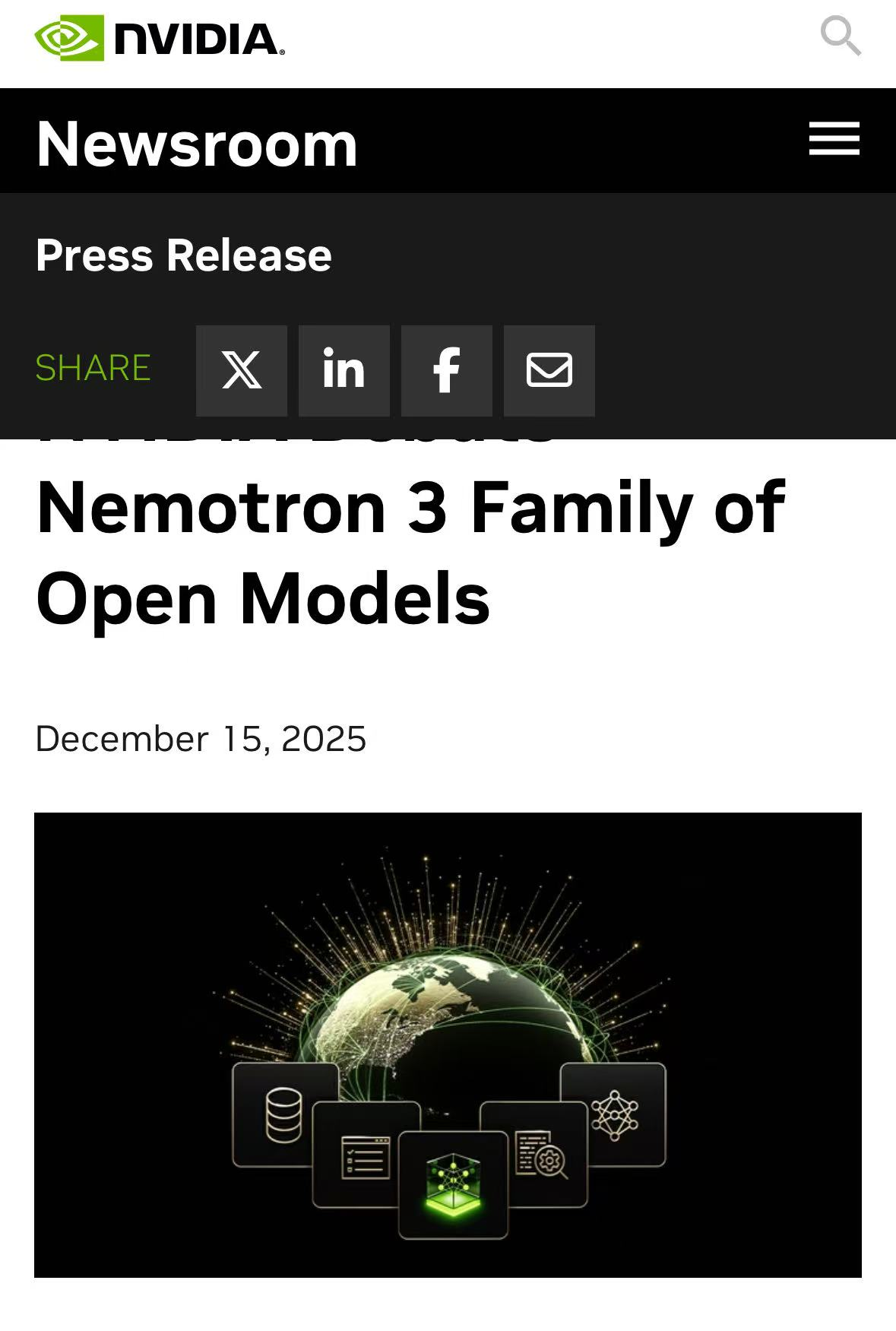 美东时间12月15日,英伟达(NVDA.US)官宣,推出NVIDIA Nemotron3系列开源模型,并提供了帮助工程师使用这些模型的数据和工具。